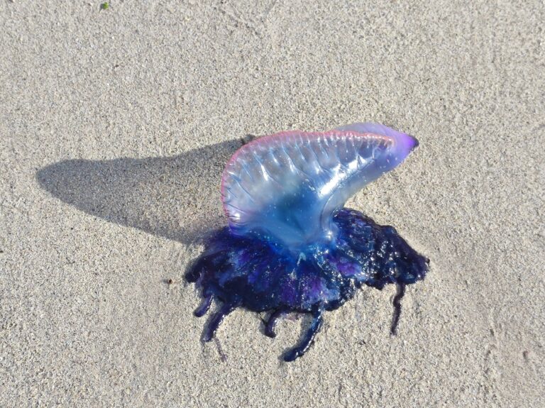 There were a LOT of Portugese Man of War on the beach yesterday. I think there must have been 100 along the shorline. I also don’t think they were dead – I think they may have been stranded. I guess…
