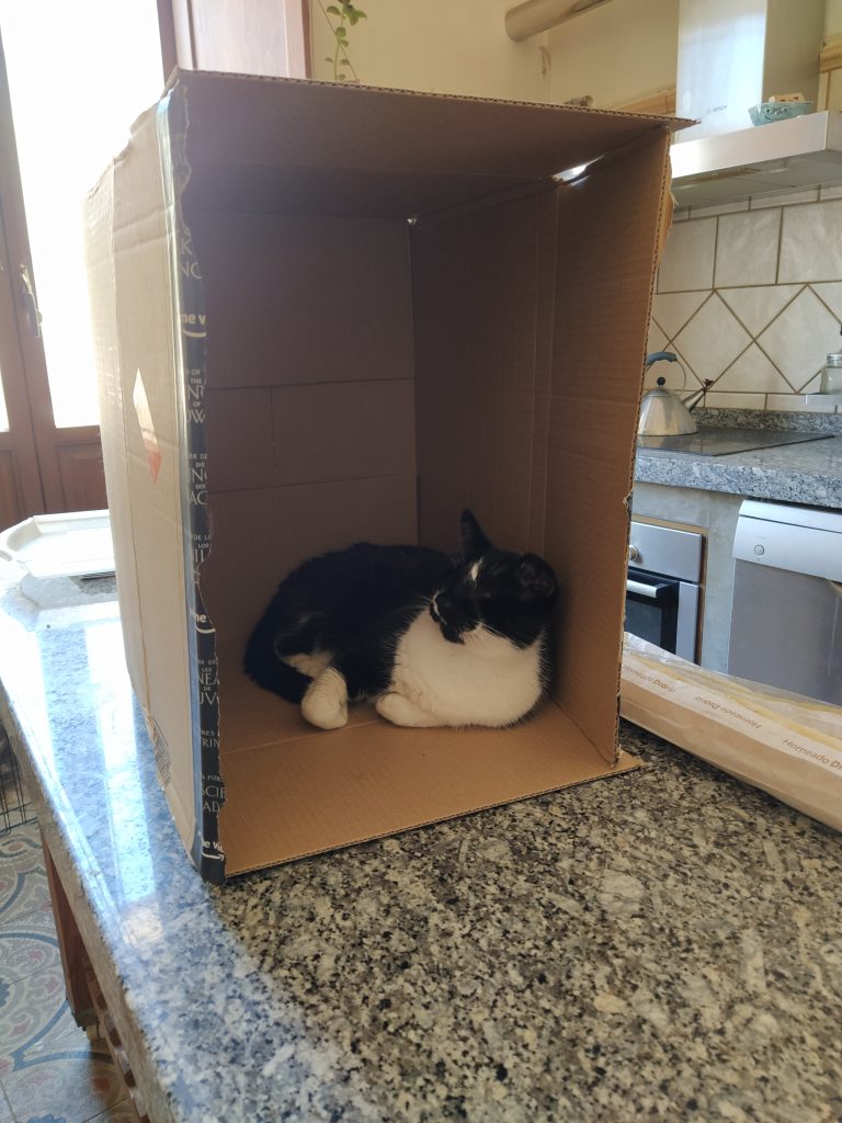 Here is Pirata in a box! Given he is a cat with no eyes, it is truly remarkable how he finds boxes. He was in this one literally as soon as the box was empty. Ian moved the box off…