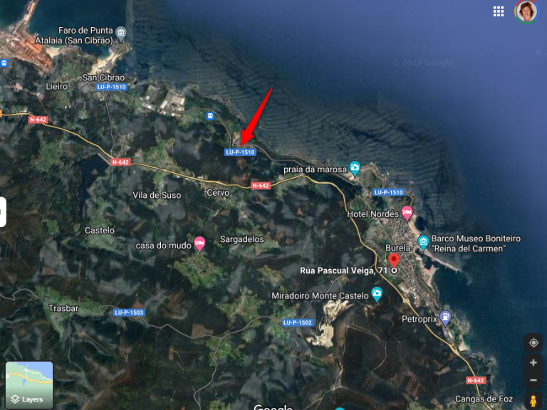 That tiny dot by the arrow is Ian on the beach at Burela. There are a couple of webcams which show the beaches It was a bit tricky working out which dot Ian was, particularly as the webcams only…