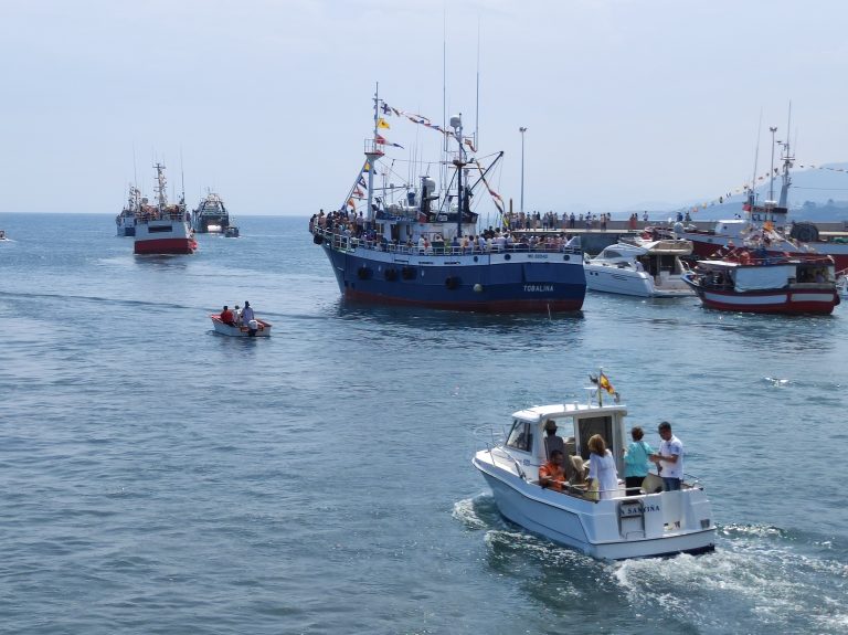 It was the patron saint of Burela’s celebration at the weekend. Rather than parading the saint around the town, instead the saint was taken out to sea with fishing boats and little sailing craft following it. I think the Saint…