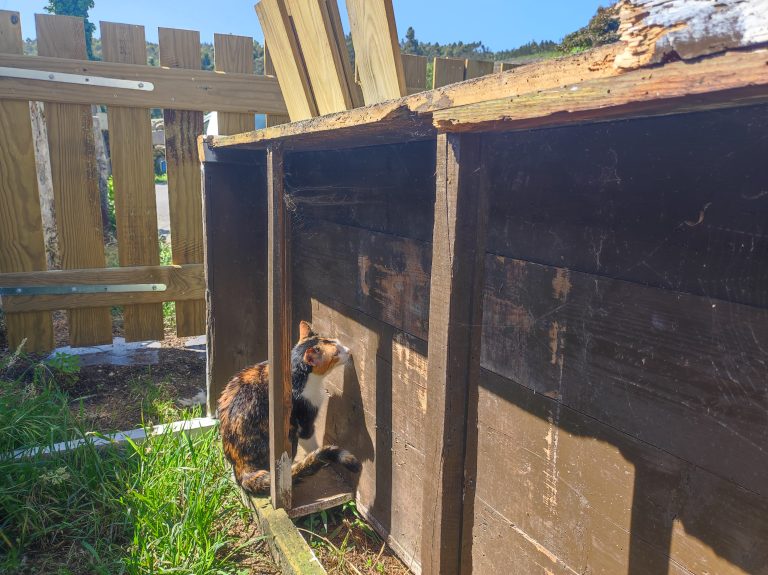 Ian has finished the gate, fence and steps and Dimrose and Pirata had their first adventure outside since we moved. Roland and Babbity haven’t been out yet. Roland will need to go out in his own time and Babbity will…
