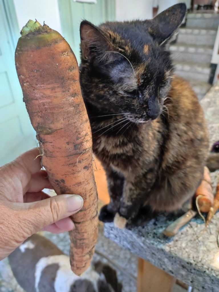 Remember to collect the vegetables. I’d sort of forgotten about our carrots, having picked a few as baby carrots, we had left the rest. Only to find that now they are the size of our cat Babbity! We have also…