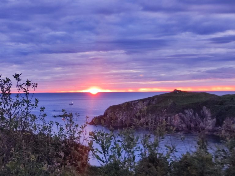 And here’s a fishing boat just before the sun comes up. It still has its light on. It’s quite nice to see the fishing boats with their lights on at night as they sort of twinkle in the dark. Talking…