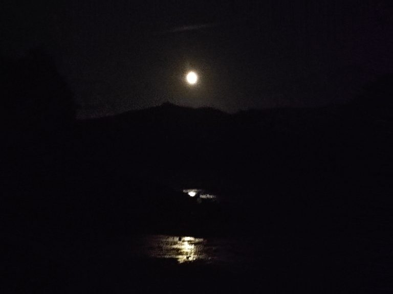Last night, when we put the animals out for their before-bed wander, we noticed that the moon was very big and very golden. So we walked down to the beach to look at it from there. Unfortunately – it was…