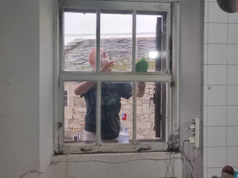 Ian decided it was time to give the windows a clean when we couldn’t work out if it was a mist we could see or smudges on the windows! We’ve had a few sea mists recently and it’s quite interesting…