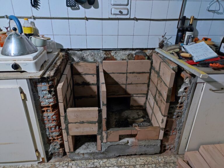 The stove is beginning to take shape! The black facia in the photo above isn’t fixed in place yet as Ian needs to do the brickwork behind it. He’s got thermal bricks which he will build the main body of…