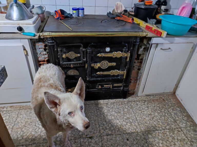 Ian has finished the stove and we are waiting now for a couple of days before we can light it and see how it works! The cast iron top had been painted, as you can see in the pic below:…
