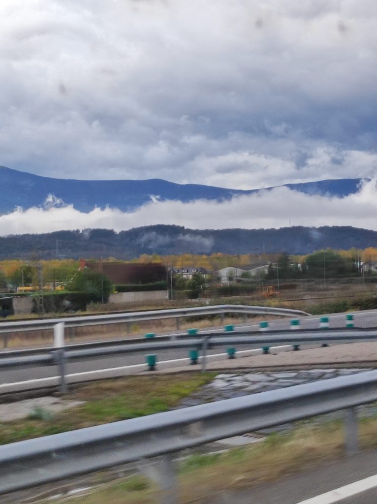 What was interesting was the scenery not really changing until we got to the very north of Spain. While there were hills and mountains in the background, the brown scenery and fields of olive trees stayed pretty much with us. I thought we’d see changes in landscape much earlier. It wasn’t until we got to the very far north that I suddenly realized we started to see dicidous trees changing colour in autumn, something we realized we hadn’t seen for years!