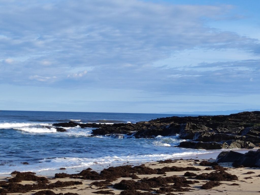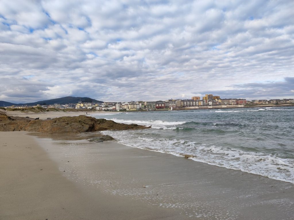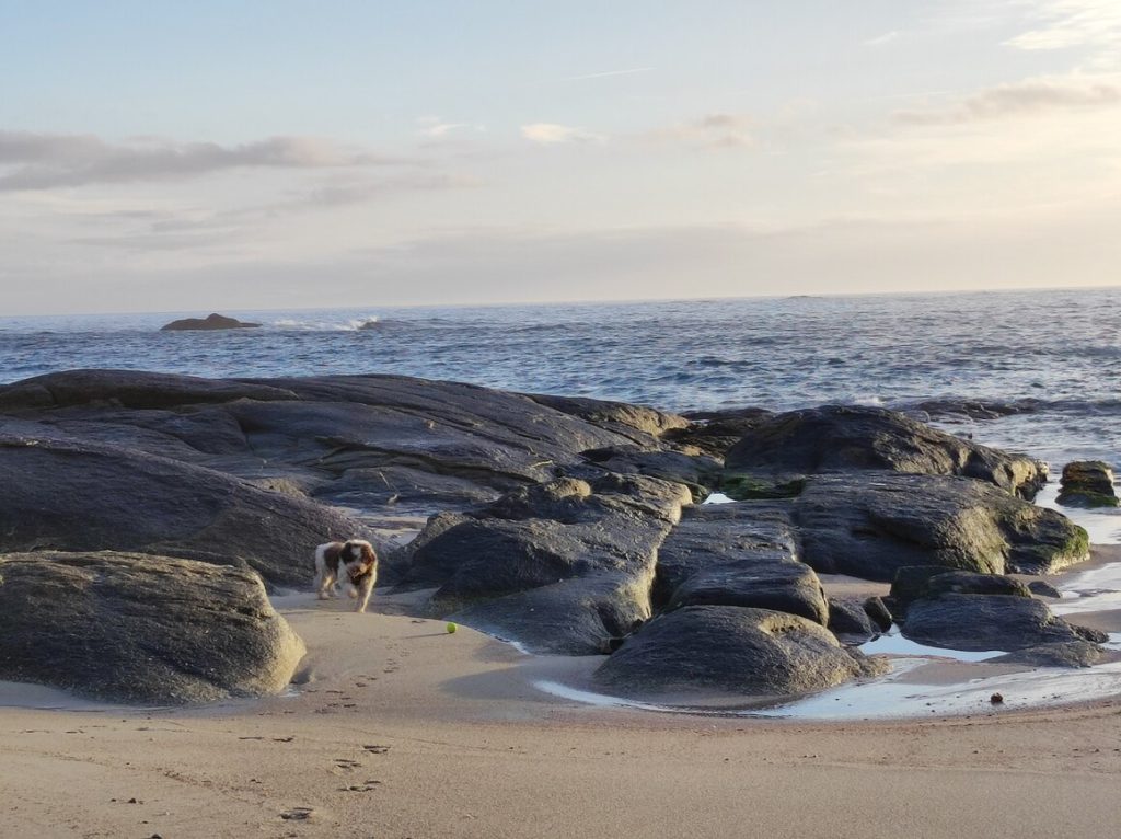 On Saturday we went to Foz, Christmas shopping. We stopped off at a few beaches on the way to take a look. There are some pretty nice beaches along that stretch – some surfing beaches, a famous beach called as Catedrals – and we found a pebble beach – the first we’ve seen.
