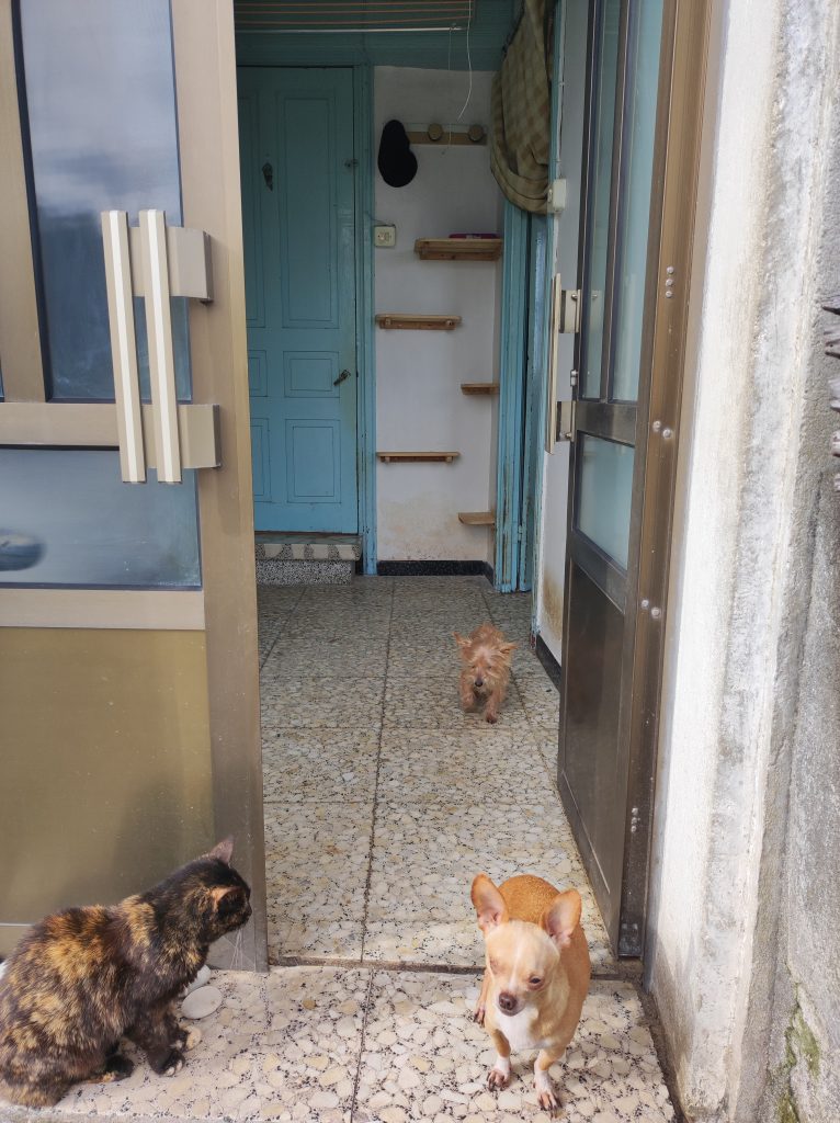 Ian built a cat tree so we can keep the cat food away from the dogs. Previously, we’d had the cat food in the little hallway that leads off the living room, that Ian cut a ‘cat flap’ through just after we moved in. While this worked well, it did mean that every time we opened that door, what feels like hundreds of dogs come charging through looking for any dropped pieces of cat food. It also means the cats are more likely to use their litter tray than go outside as where they are fed is as far away from thhe front door as possible.