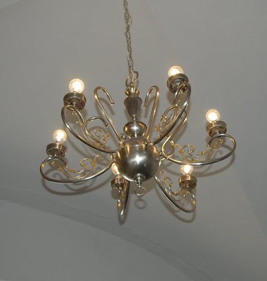 This is the chandelier that I we found put out for rubbish – Ian has sanded it down and it looks really good!