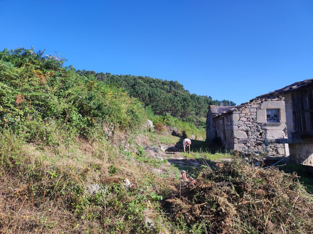 This is the view of the bit Ian is clearing looking back to the house. Where he is stood is the old stone threshing area.