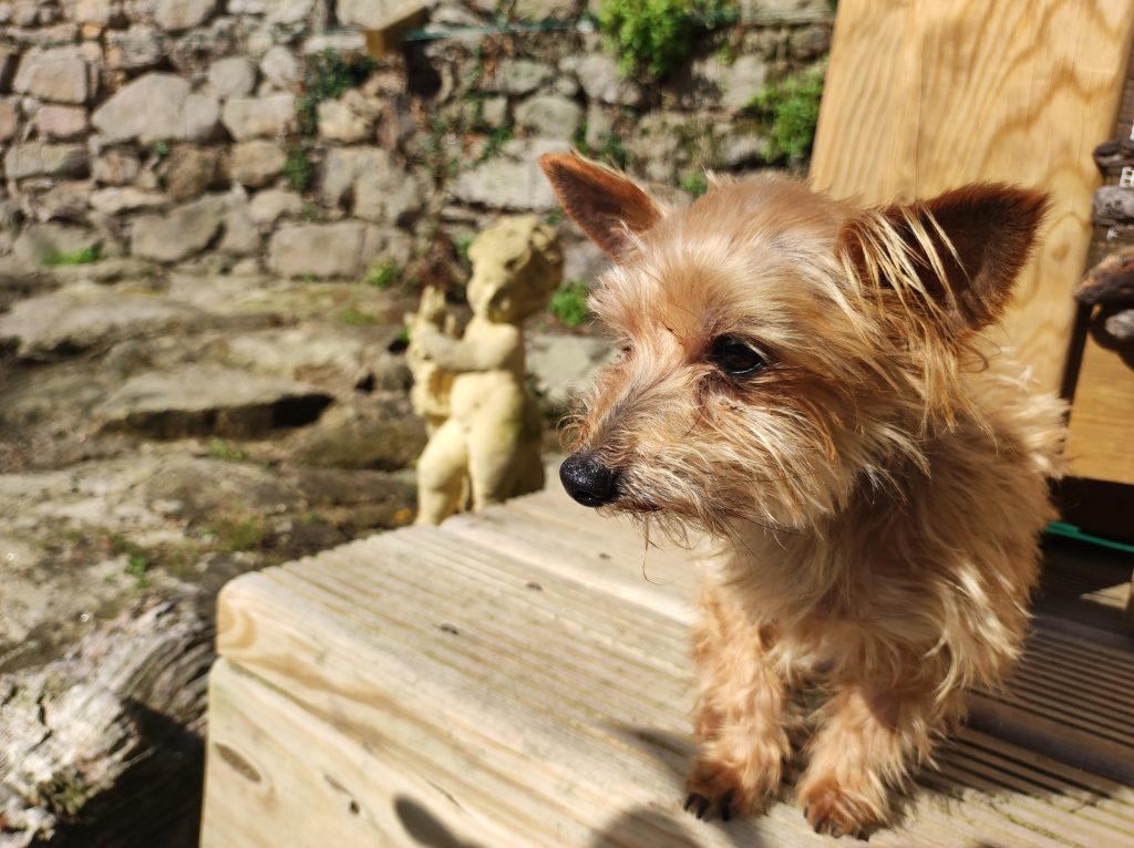 Here’s Millie sat with me while I was throwing a ball for Daisy.