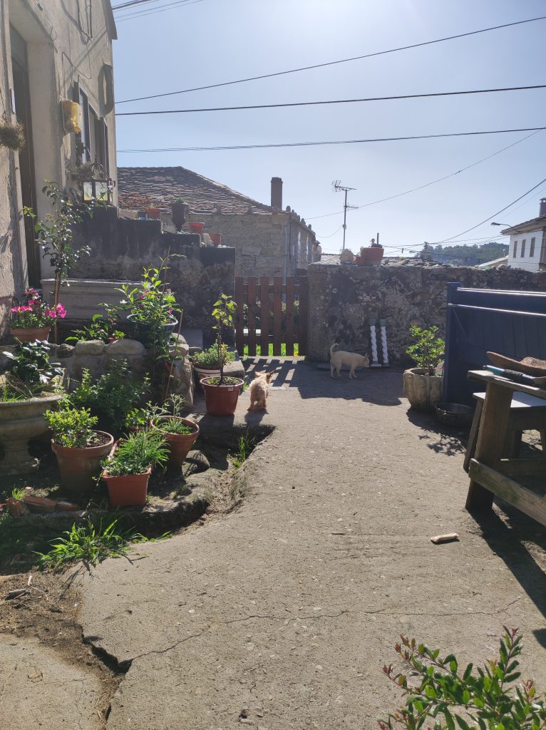 Millie and Pixie having a wander. One of the plants in the plant pots is madder, which I am growing to try dying from next year. The roots are what is used in the dying process, so I guess I’ll split the plant. I’ll wait and see what it looks like next year.