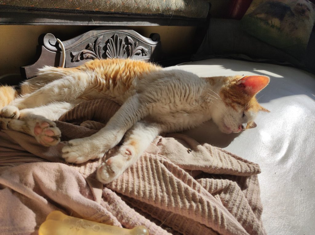 And here’s Roland, who generally doesn’t get much of a look in as he much prefers his own company and he was very much Pirata’s friend, who I think he misses. Here he’s being a proper cat – relaxing in the sun.