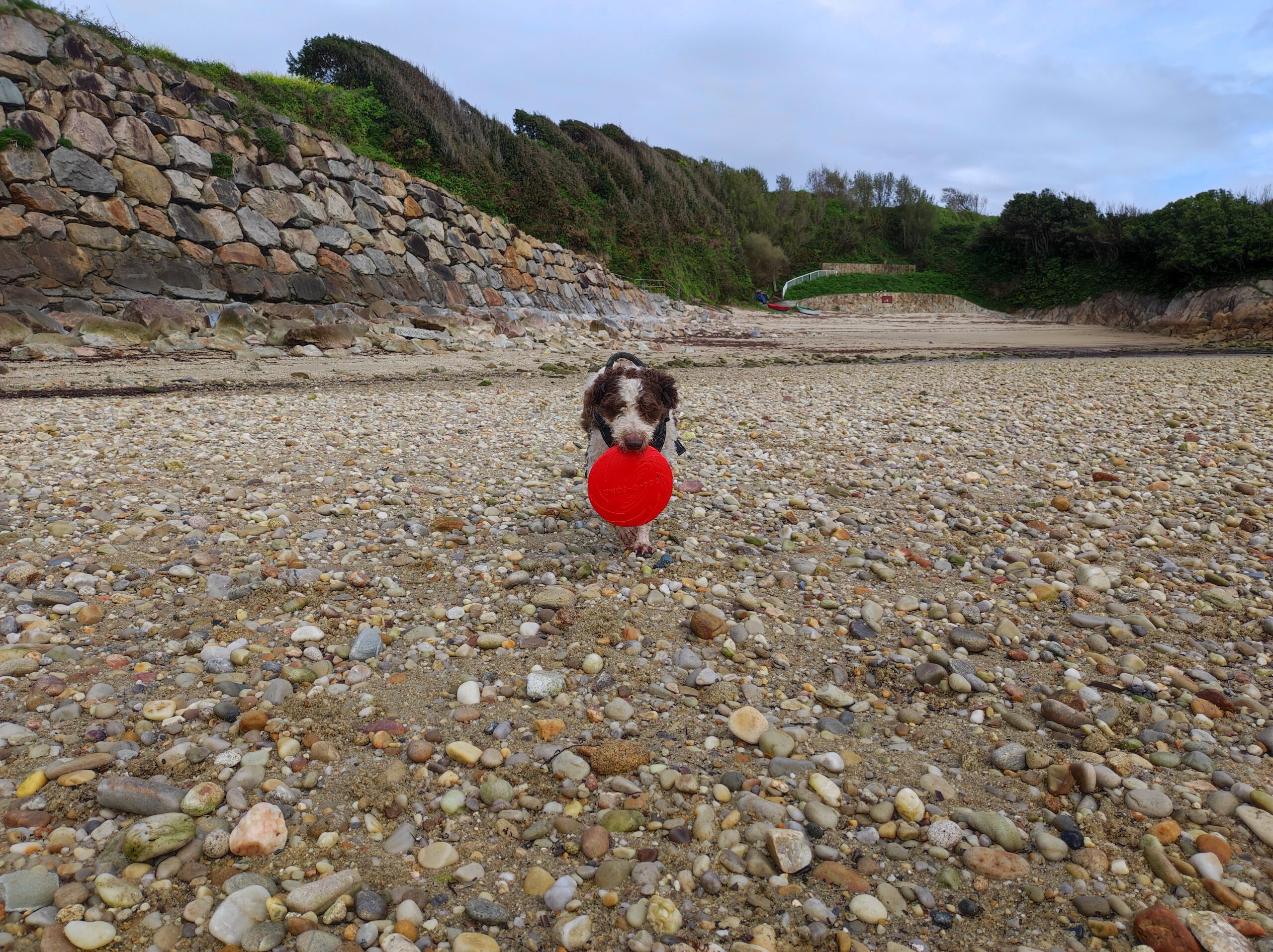 Daisy loves playing ball – she could quite happily run and fetch a ball all day. We sometimes see a dog that has no end of fun with two frisbees so we wondered how Daisy would be, and decided to try her with just one.
