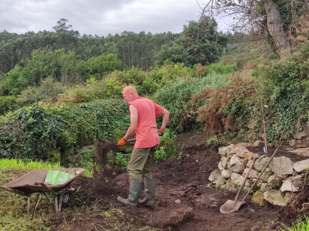 He has been clearing the space in the corner which is above where we park the car – removing the soil from the stone. We thought if we stripe this back to the stone, it will reduce the amount of weed-attracting soil and we can make built up areas for plants like in the photo above. This is where we planted the Kiwiño (little kiwis) and a walnut tree.