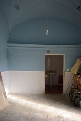 It hasn’t helped that I have changed my mind about the color of the bedroom (the blue above) – nor was I expecting the ceiling to be painted blue. I had assumed that it would be white – serves me right for assuming. However Manuel came round yesterday and was saying that the colors are great, so perhaps I’ll give it a few days before getting too gloomy.