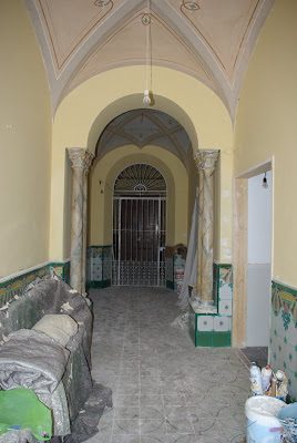 Our painter is mixing all the colors up by hand using pigments. The color in the hallway is superb. It is a traditional color and is very north African in style. It would come from the days when this part of Spain was inhabited by the Moors. The big front room is sort of a duck egg blue – actually it is the same color as it was before but perhaps a little stronger. The color in the other front room is a sort of sandy color. I think he is a little disappointed that we want the new kitchen to be white – but we really want to spend some time there before finally deciding how we want it to look. A good coat of white paint will, if nothing else, act as an undercoat for when we make our final plans.