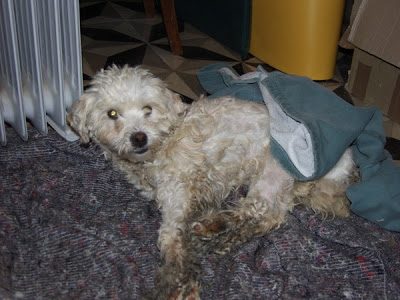This is dog with haircut. Ian went on an emergency mission for chicken earlier, as he was turning his nose up to sausages (and as for dog food……).