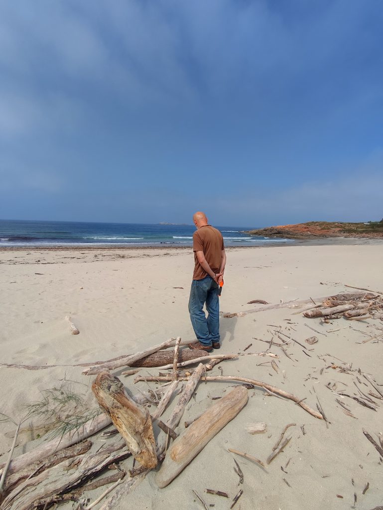 Ian’s carrying a saw in the photo above, as we thought we’d try to slice some driftwood on the beach. However, this is a new saw so although we took it to the beach – after thinking about the damage the sand might cause – we took it home again!!