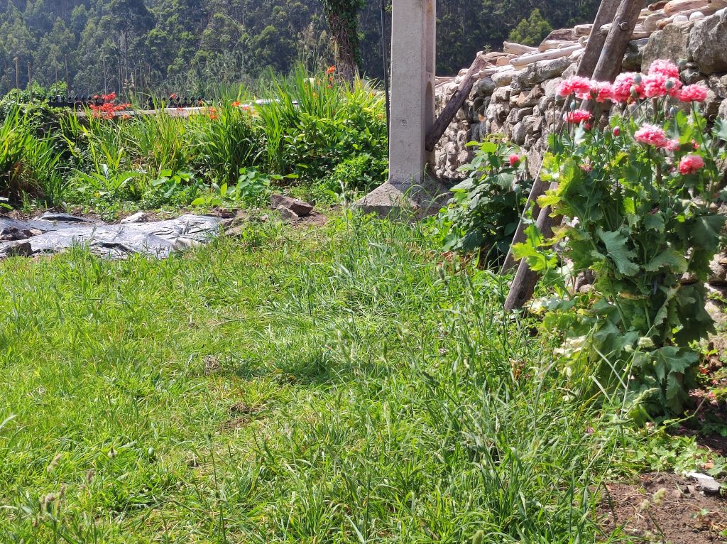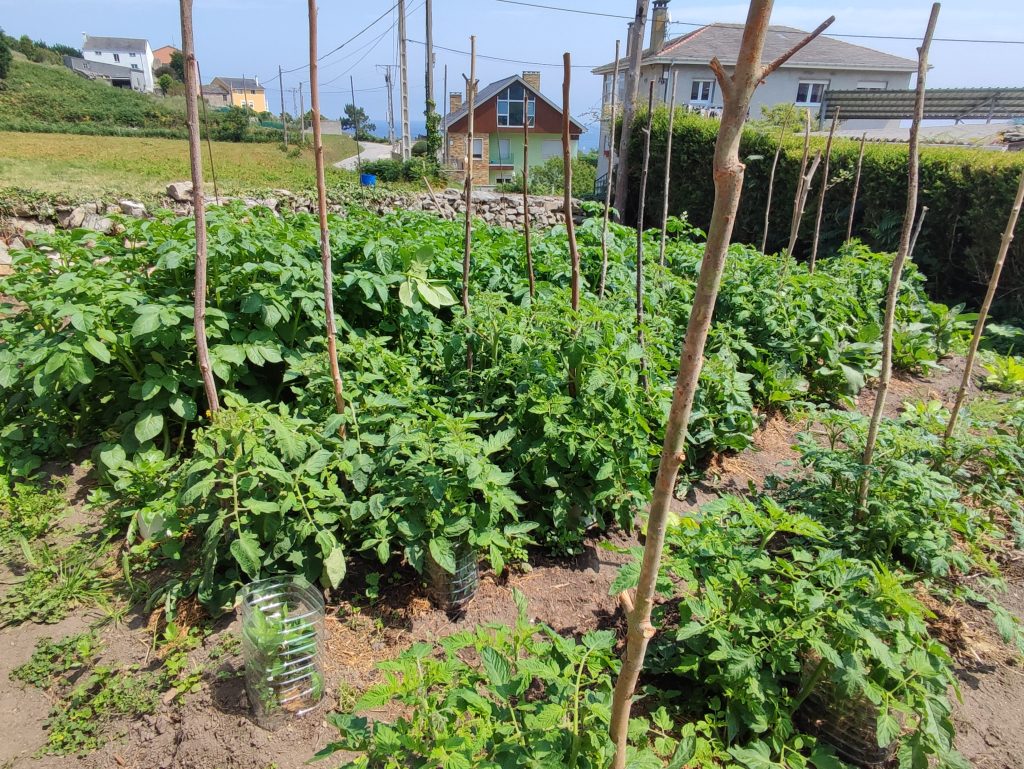 In the front of the garden we’ve got artichoke, melon, strawberries and a raspberry bush. Two of our melons died during the cold wind, the wind whipped them round and round until they broke, but hopefully the rest will be OK.