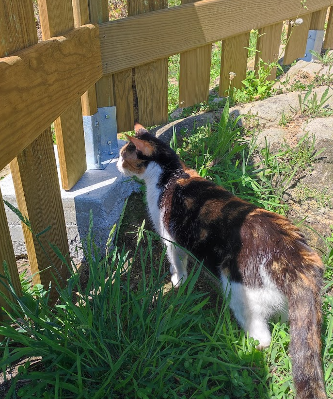 Ian has finished the gate, fence and steps and Dimrose and Pirata had their first adventure outside since we moved. Roland and Babbity haven’t been out yet. Roland will need to go out in his own time and Babbity will be able to get out over the fence (she can see), so we need to supervise her to make sure she knows how to get back.