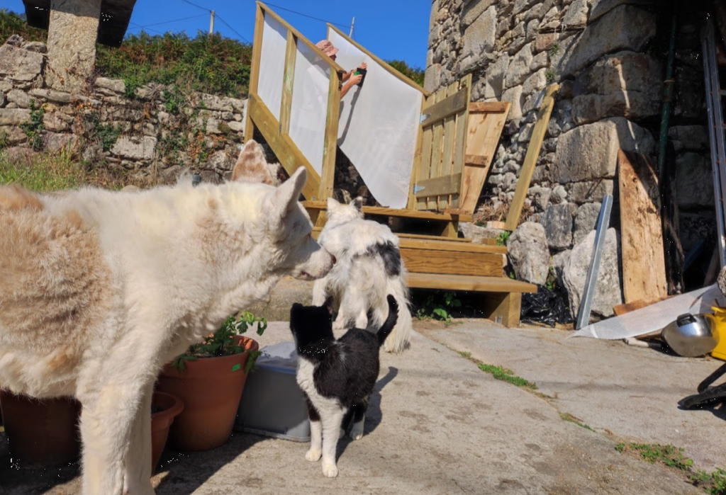 Pirata – Cat of Action – enjoyed being outside too – although he has had to be bought in a few times for paying too much attention to the electric jigsaw. While you would think that being blind, Pirata would avoid things that sound dangerous – his approach is more along the lines of ‘ooh, that sounds like an electric drill – let me get up super-close…’