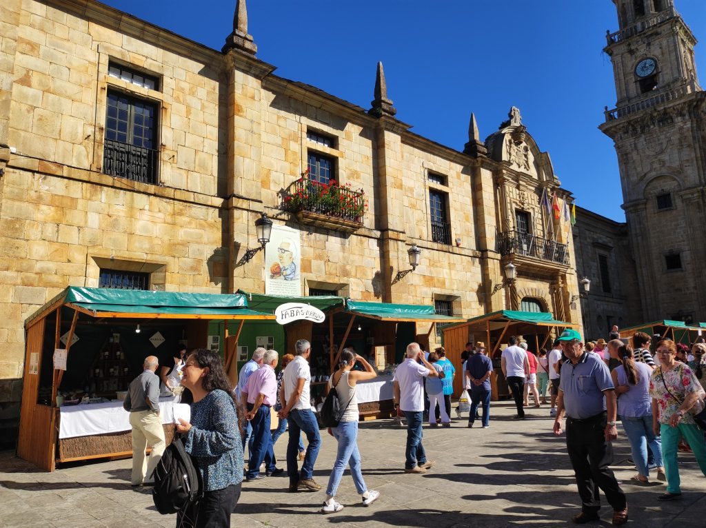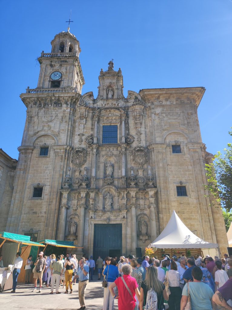 There were lots of stalls selling beans and it was a good opportunity to visit a town we haven’t visited before. The church is the grandest we’ve seen here – and apparently was the inspiration for the cathedral at Santiago.