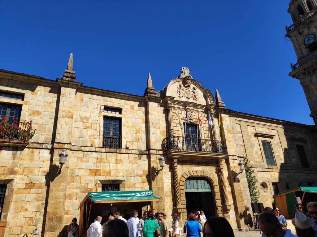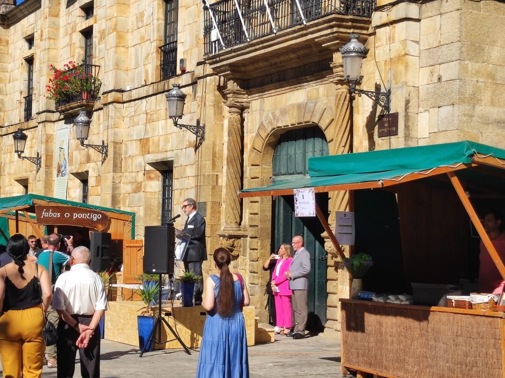 The chap on the podium in the photo below is an actor who was reading the words of a famous author of this town who was imprisoned during the Franco regime as wrote in Galego, refusing to write in Spanish. Galego and the other regional languages were banned by Franco.