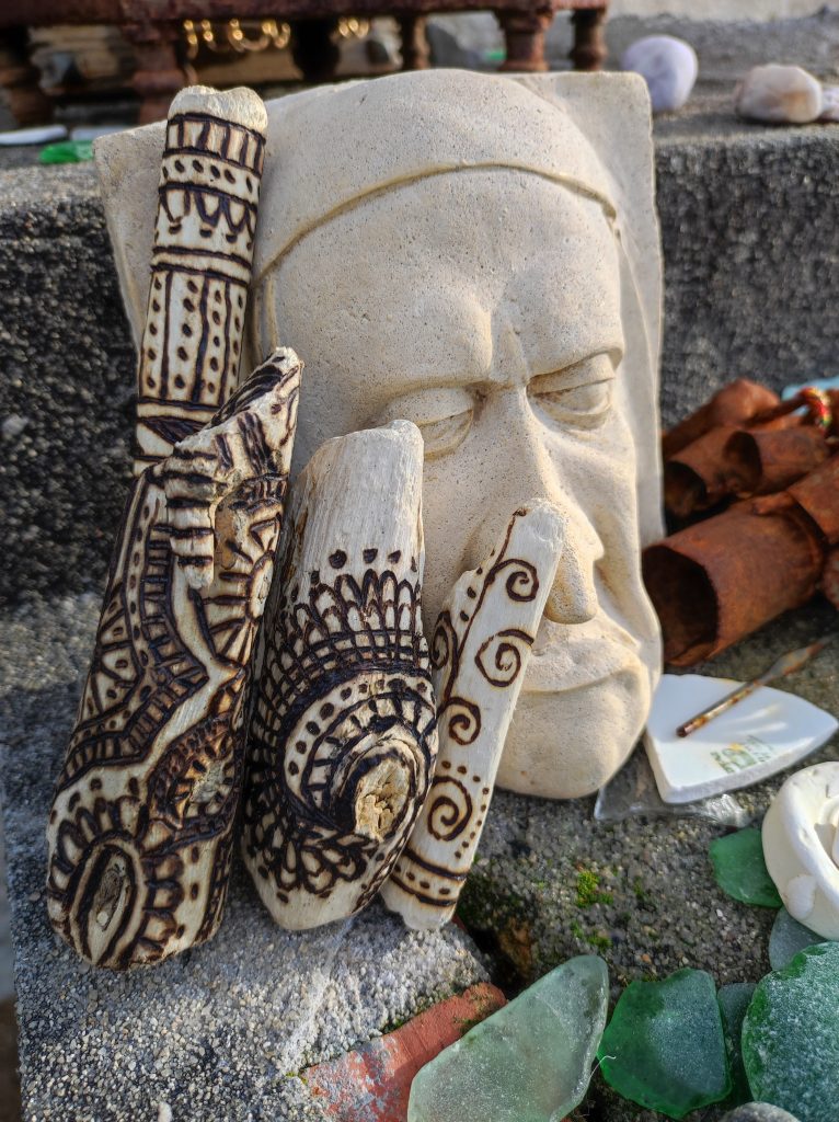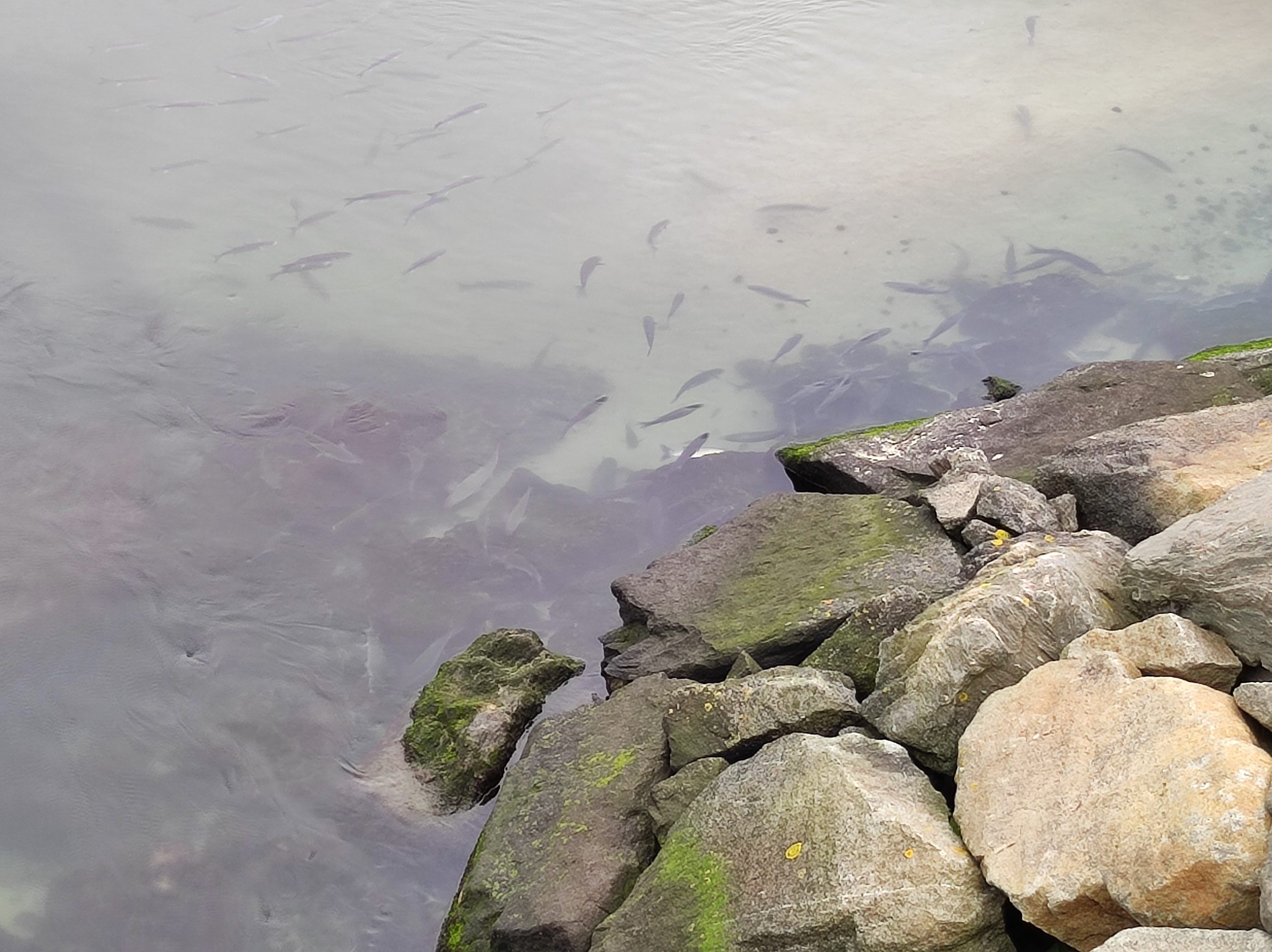 We were out collecting driftwood and there was a lot of movement in the sea – and when we were stood on the rocks, we could see what the movement was – lots and lots of fish! They were quite big too – not sure I’ll be swimming with them!