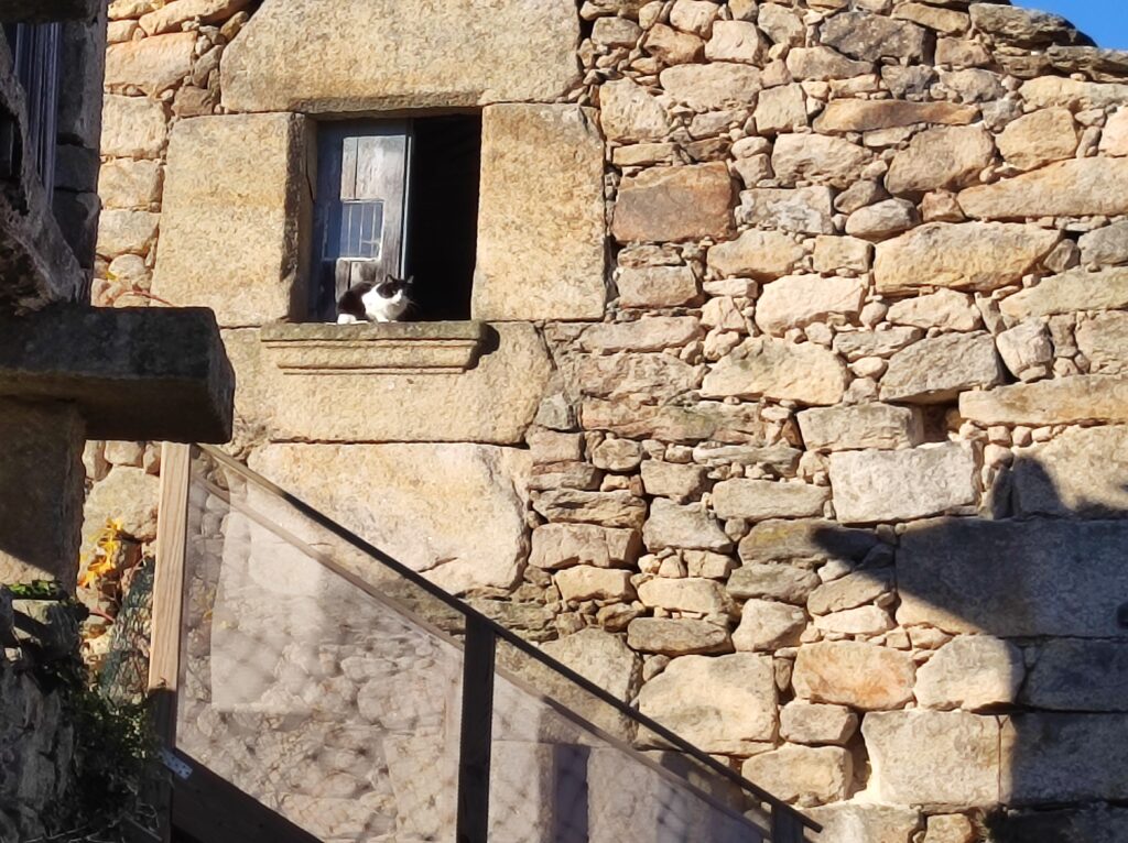 We went out and came home to find a little cat sat on the window ledge on the barn side of the house. This is a bit of a suprise as where he/she is sat is difficult to get to as this is where the ceiling has collapsed and also the root above is collapsing so it’s a little dangerous – but I guess the cat felt he had enough lives to give it a go! I think he must get through the little window in the wall and then make his way upstairs and to the window. It is a lovely sunny spot though so I’m not surprised a cat would choose this to sit and contemplate.
