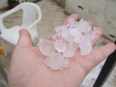 Admittedly, Ian would have preferred that instead of wandering around with the camera I helped bail the house out – particularly as we were doing it for the second time in 3 hours, however I felt that this jumbo hail deserved a pic.