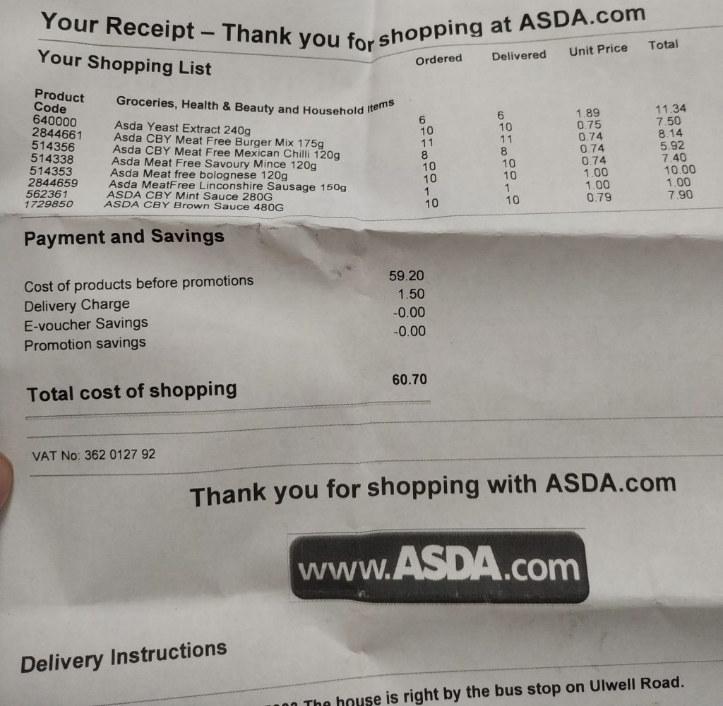 I found this receipt stuck away in a bag, and it made me smile. It’s from 2016 and it’s obviously me stocking up from Asda, brown sauce and beanfeasts 😉