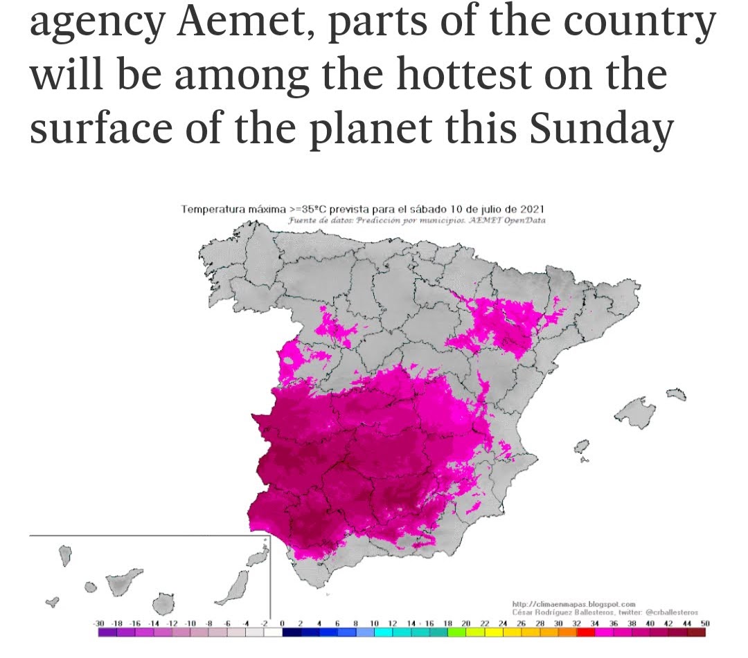 This weekend has been very hot. Forecast yesterday was 42, however our patio would have been hotter than that as it traps the heat. The temperature though dropped significantly overnight to a high of 30, I think the drop comes because the wind changes direction. The wind over the weekend was coming from over the Sahara and it’s like being stood in front of a heat gun.