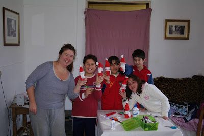 I think they enjoyed themselves. Ian was Mr Grumpy combined with Scrooge, hiding in the back room. Although he was dragged out of hiding to put the hairdryer on the glitter and glue soaked Christmas monsters to try to dry them out, which signaled a high level of giggling. I understand enough 8-year old level Spanish to know that they were amused by Ian having a hairdryer.