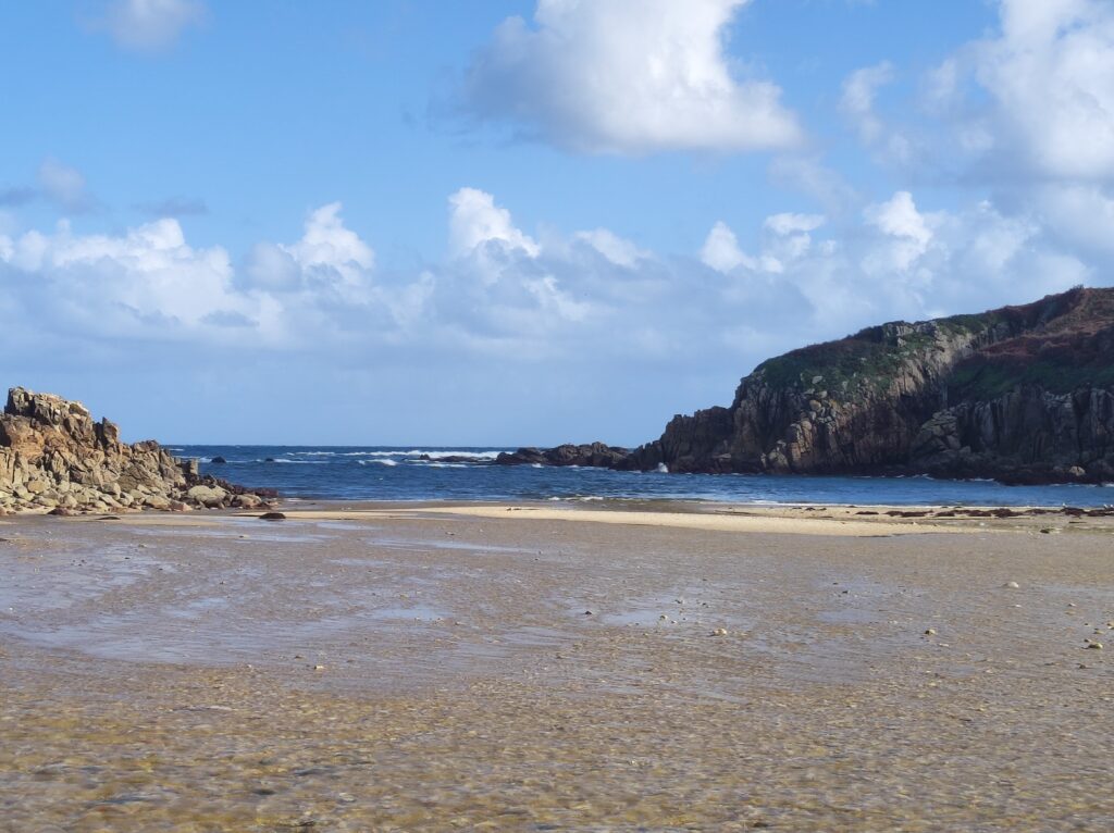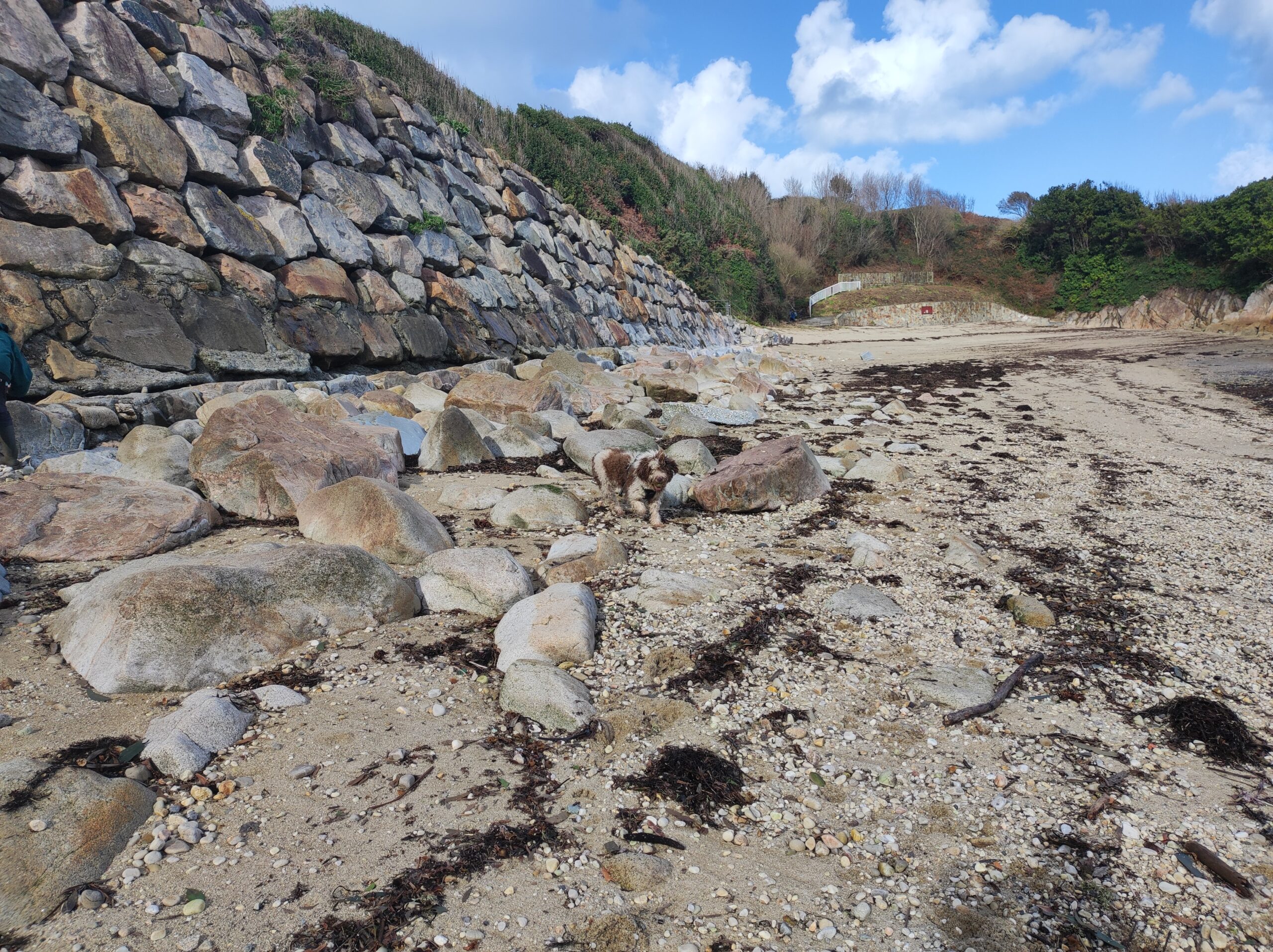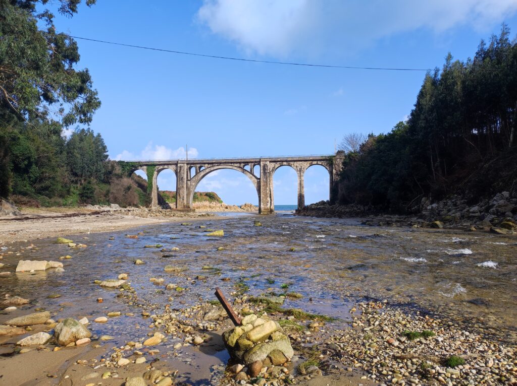 When we were at Rueta ‘our’ beach, I saw a man come round the rocks on the left, right at the tip of the land behind the bridge. I was where I was when I took the pic above, but he came around these rocks: