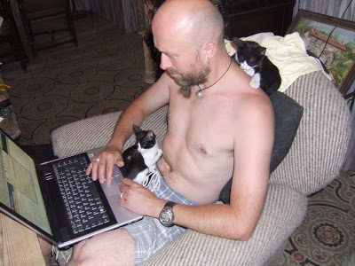 ianbb-8549711Kittens showing Ian how to use the new laptop. Look in the background and you’ll see we have found Nanny’s painting of Bridge Cottage.