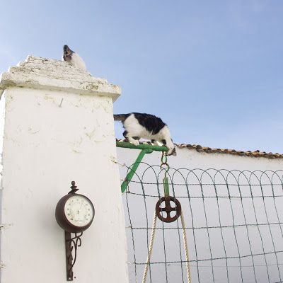 A game of playing on top of the well post resulted in Ian having to rescue the kittens as they were unable to clamber down.