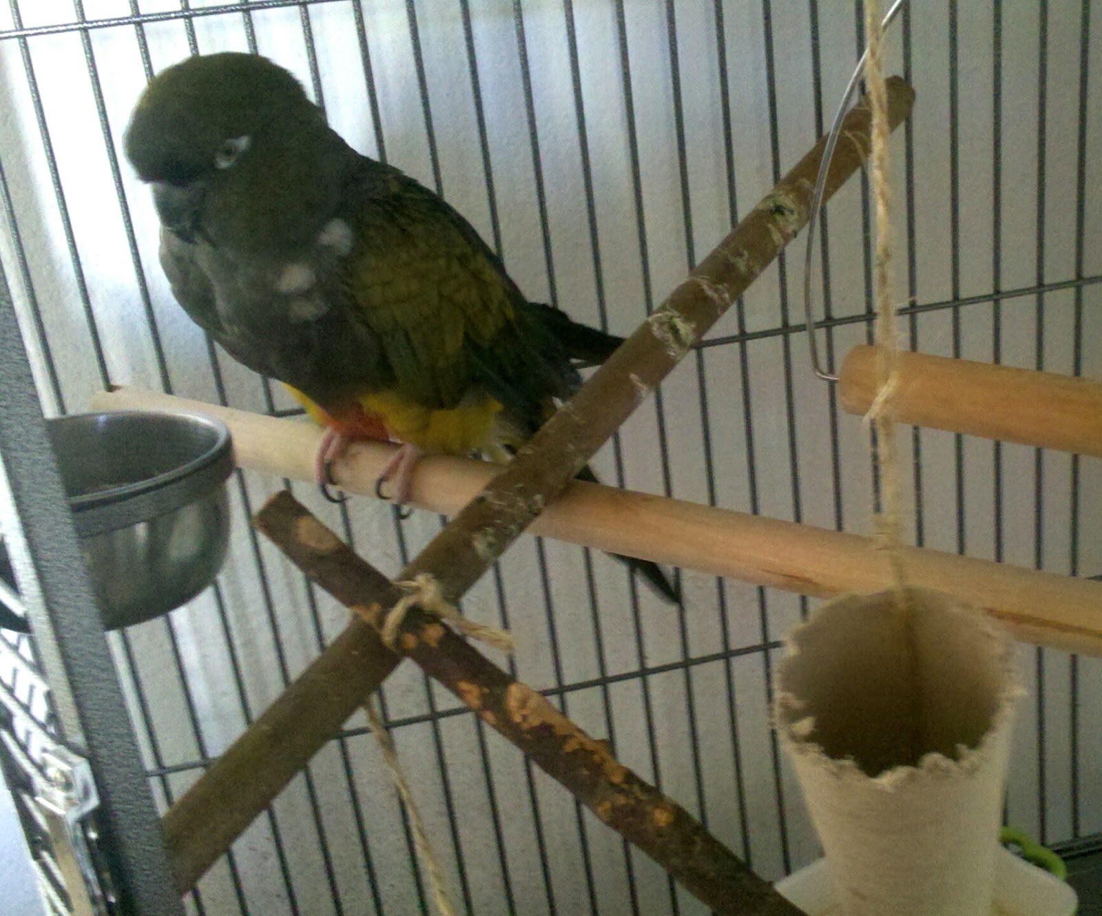 His antics are still keeping Rosie fixated.She is rarely more than a couple of feet from his cage.