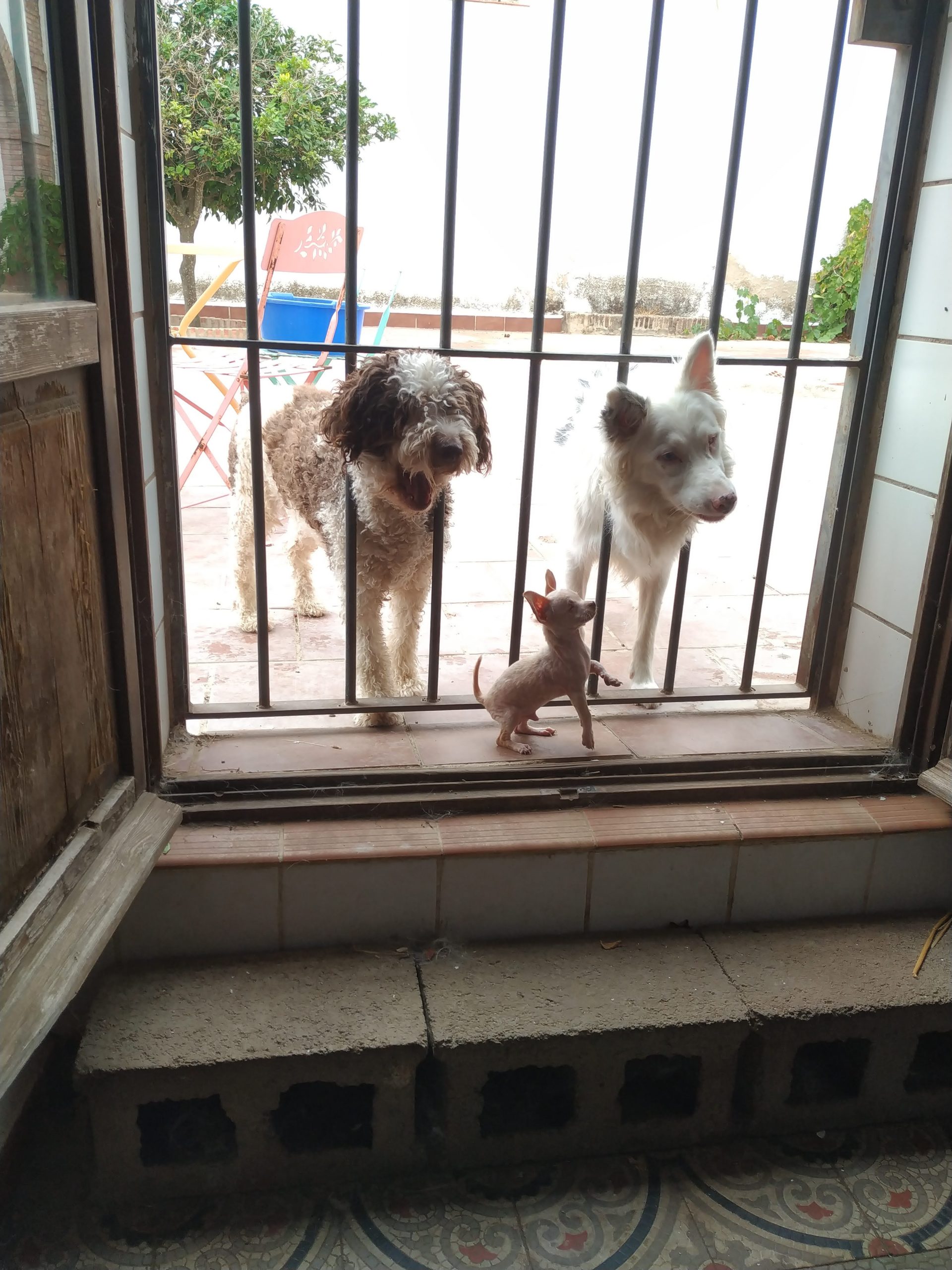 I’m not sure what this photo shows, other than our apparently clever dogs are in danger of getting their heads stuck in the railings not realising they can’t get in and out like Percy can 🙂