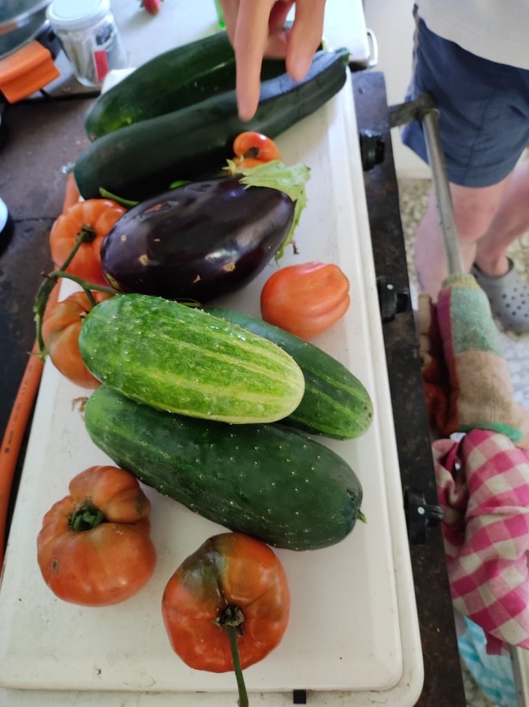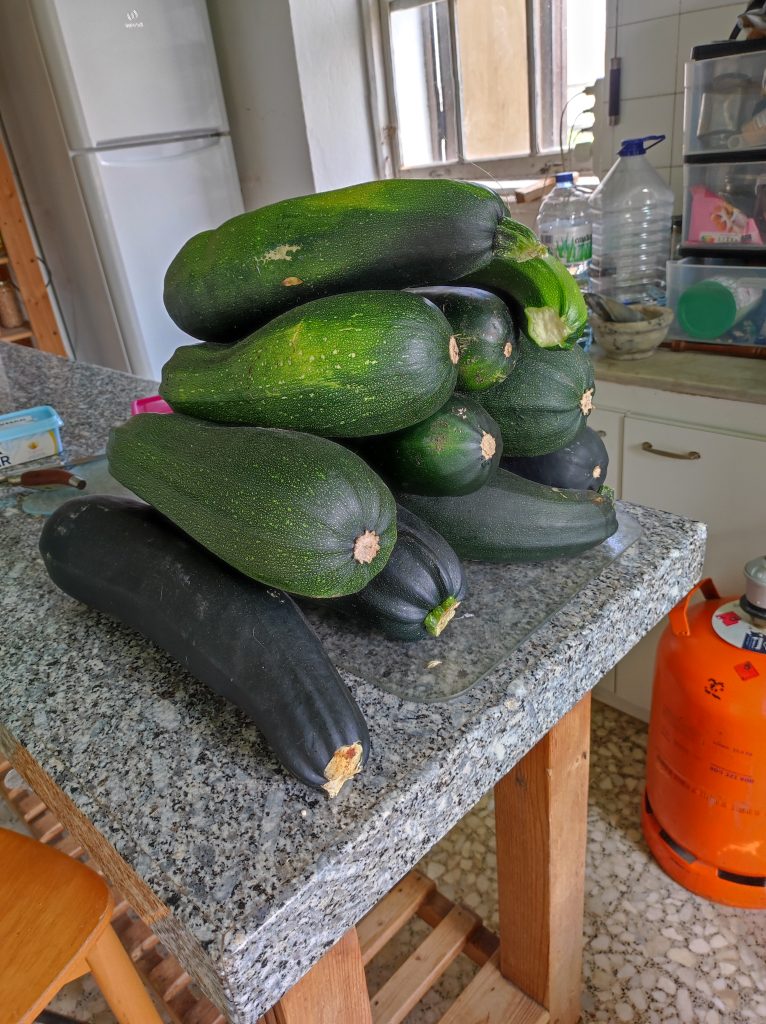 Our cougettes/marrows are doing well. Some may say too well. However, we are learning there are a surprisingly large number of ways to eat them!
