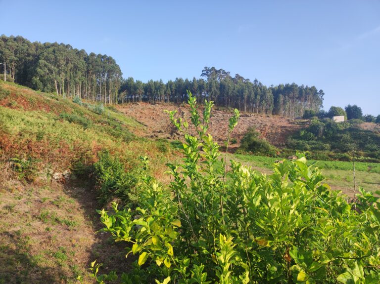 I think that the eucalyptus cutting has been finished. Yesterday a different machine arrived, this time a sort of cross between a digger and a combine harvester and neatly bundled all the leftover twigs and bits and pieces into bales…