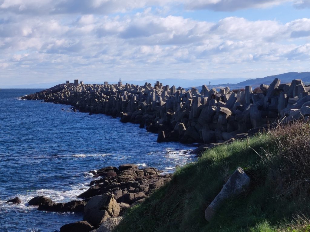 And this is how they are used, to make a breakwater. Apparently 18000 of them were built, and if I understand correctly, each one is 50 tons.