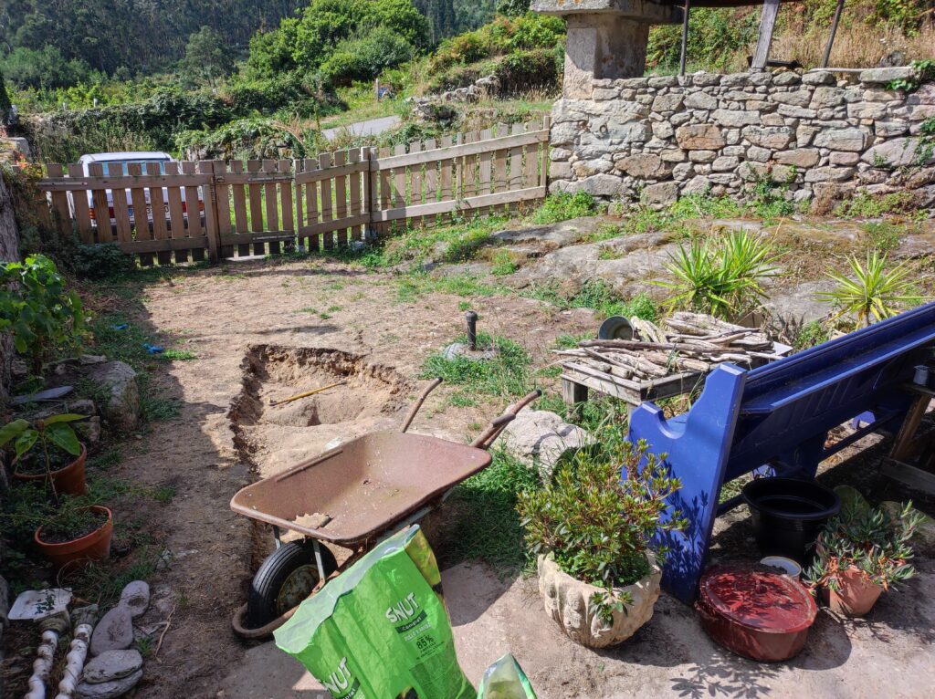 It has been a big job as the house is built on rock, so in some places he’s had to chip rock away to make it flat and in others fill in with bits of crushed stone.