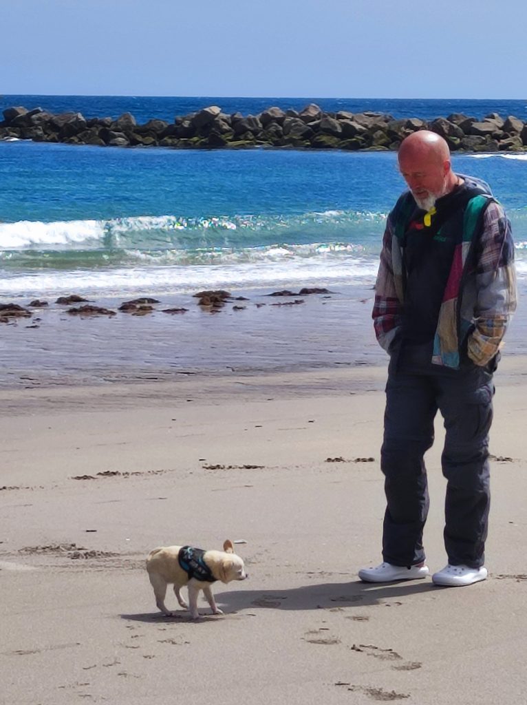 This time they couldn’t take as much blood as they needed, so they wanted to run the tests while we waited in case they needed to take more, so we wandered down to the beach in Burela instead of waiting in the vet’s office.