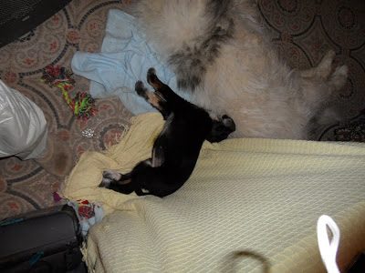 Rosie Week 1Kate PullenDecember 27, 2010Uncategorized We’ve been working out the best way to take a photo of Rosie each week so we can see how she’s growing. This isn’t quite right, but shows her in comparison to Basil, Pirata and Davy and a close-up on Ian’s lap.