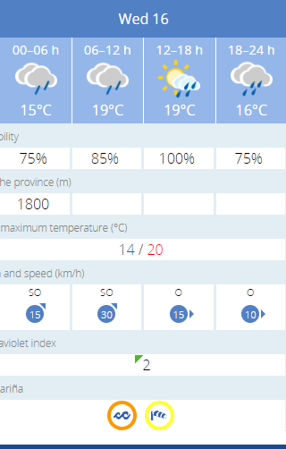 And here’s something we haven’t seen much of before. Although we are very familiar with extreme weather warnings because of heat – this time we are seeing wave warnings. PLUS the 1800 figure near the top of the page is saying there’s snow at 1800 meters. That’s in the province, so all of Lugo – I wonder if this means the area which I said I didn’t particularly enjoying travelling through now has snow..?