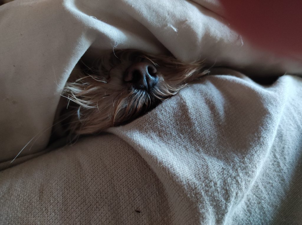 And just because it makes me smile – a photo of Horace! This is probably the most common view we have of him – a little nose sticking out from under the duvet!
