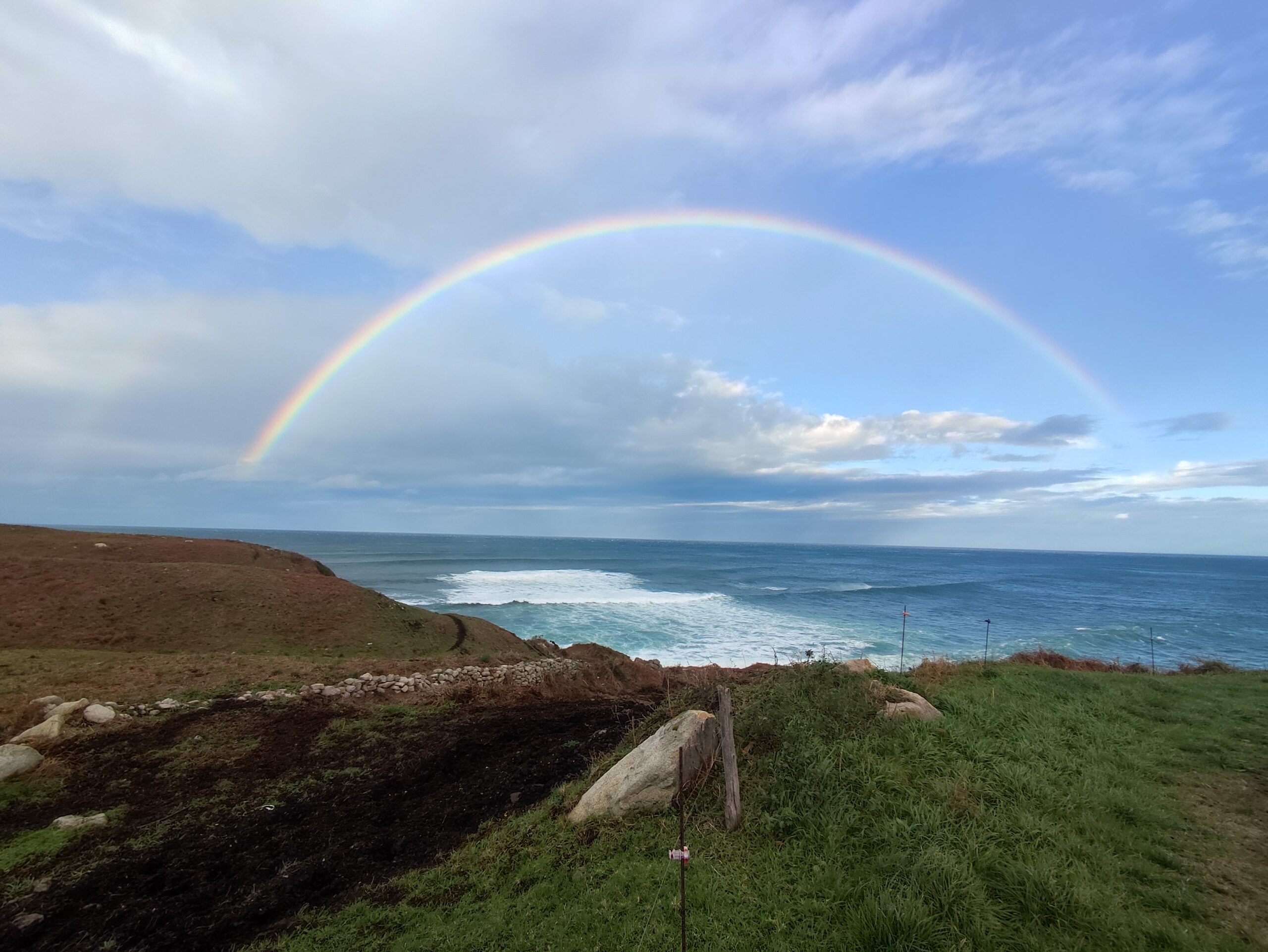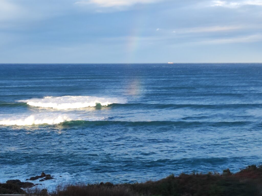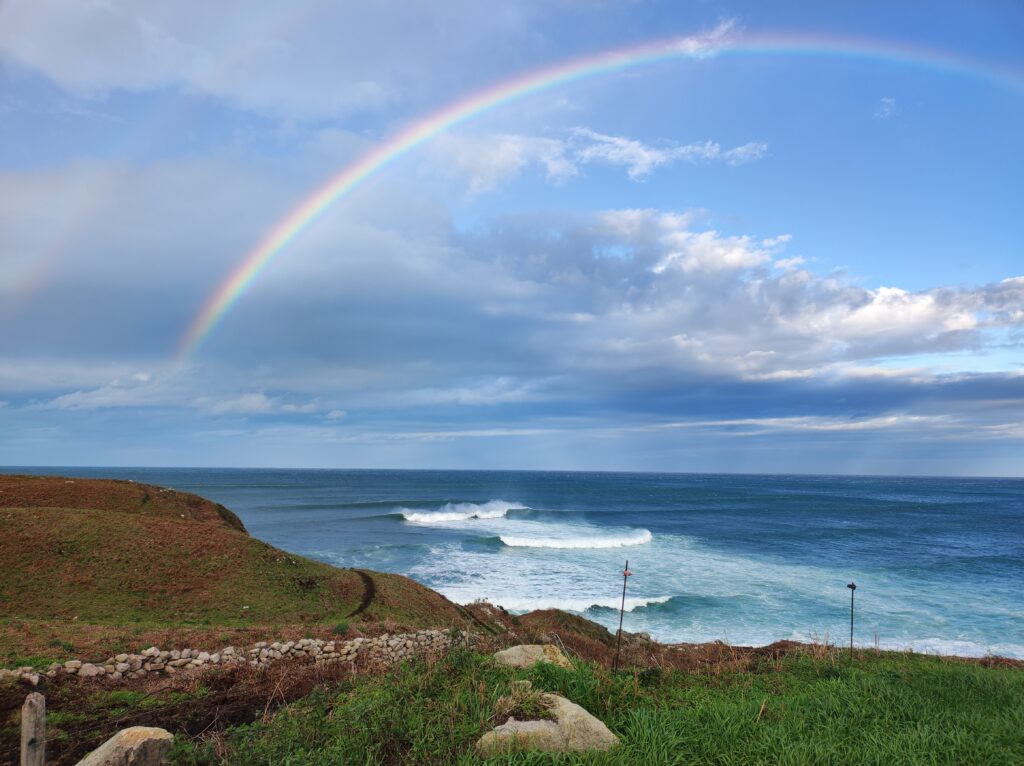 I think it’s been non stop for a couple of weeks, with the sea being very wavy and quick downfalls of showers which seem to be very localized which gives us the rainbows.